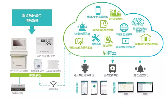 為強(qiáng)化房企及公共建筑消防監(jiān)管力度、提升社會(huì)整體消防安全水平,尼特自主研發(fā)的“尼特云”智慧消防平臺(tái),可為品牌房企實(shí)現(xiàn)跨城市、跨區(qū)域、跨品牌的遠(yuǎn)程監(jiān)管功能,通過獨(dú)立定制服務(wù)方案,大大提升品牌房企自身的消防管理水平。目前“尼特云”已經(jīng)在碧桂園集團(tuán)、秦皇島市第一醫(yī)院等重要項(xiàng)目中應(yīng)用。平臺(tái)包含火災(zāi)預(yù)警、消防水監(jiān)管、用電安全監(jiān)管、遠(yuǎn)程巡檢、遠(yuǎn)程維保、地理信息聯(lián)動(dòng)、人員監(jiān)管、火災(zāi)研判、應(yīng)急預(yù)案設(shè)置、大數(shù)據(jù)分析等模塊,從信息源頭的采集到后期結(jié)果的處理與維護(hù),讓品牌房企的消防管理工作更全面、更專業(yè)!