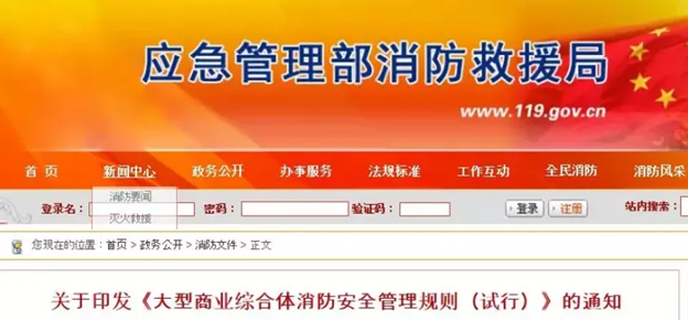 2019年11月26日,應(yīng)急管理部消防救援局《大型商業(yè)綜合體消防安全管理規(guī)則》印發(fā),主要目的是推動(dòng)大型商業(yè)綜合體落實(shí)消防安全主體責(zé)任,提升消防安全管理水平。