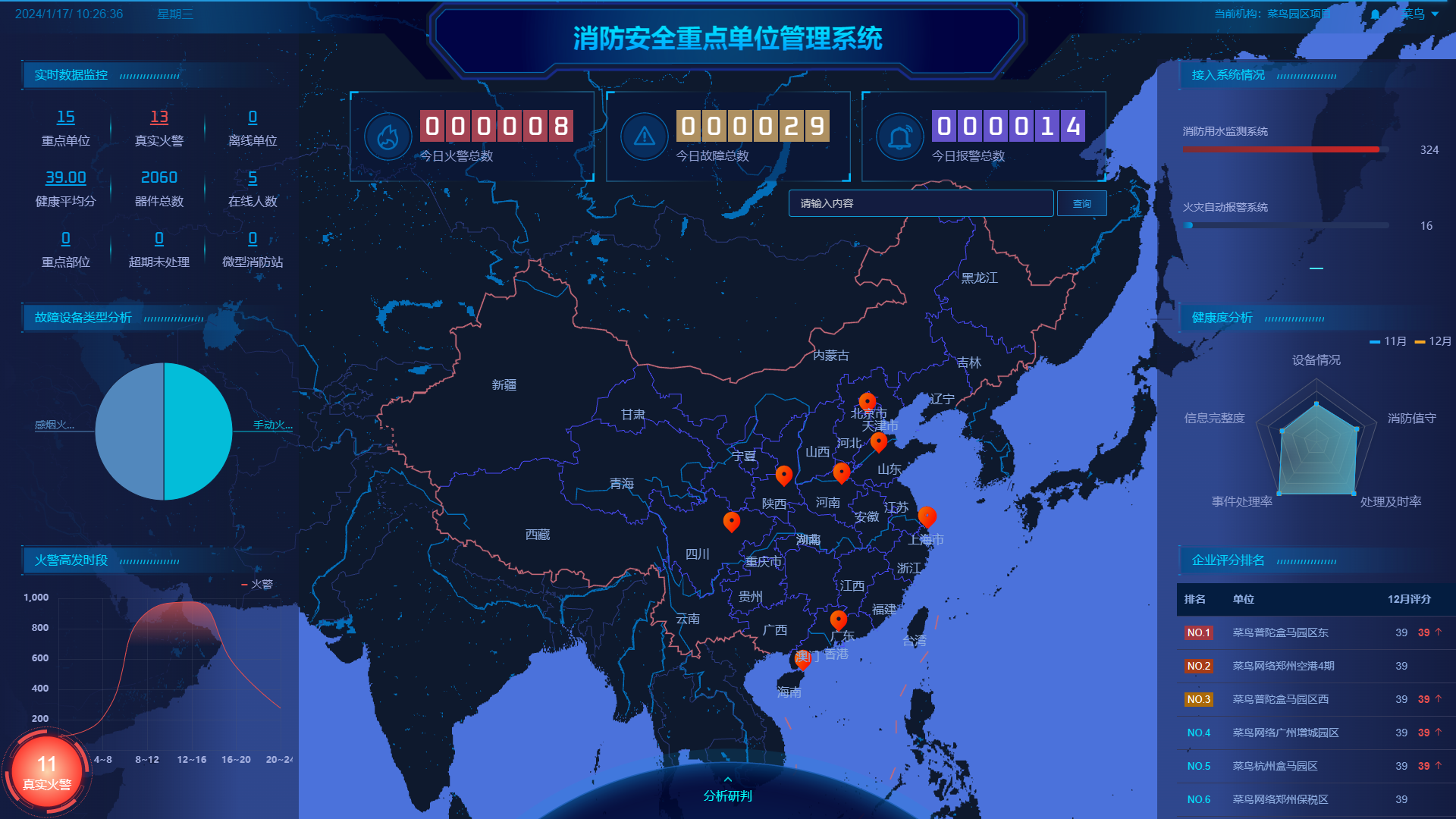 以現(xiàn)代化科技為手段,尼特為菜鳥量身打造了智慧消防解決方案,提供集動態(tài)監(jiān)測、智能分析、風(fēng)險預(yù)判、專項(xiàng)整治、綜合管理于一體的一站式消防信息化升級服務(wù),在菜鳥鄭州保稅區(qū)、鄭州空港區(qū)、濟(jì)南歷城區(qū)、??谂R空區(qū)、廣州增城區(qū)等重點(diǎn)園區(qū)及盒馬地塊實(shí)現(xiàn)了廣泛應(yīng)用,為菜鳥構(gòu)建了全面高效可靠的消防安全體系。