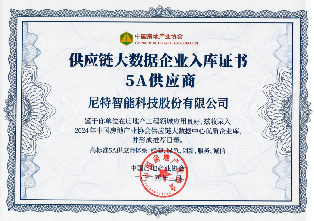 連續(xù)7年榮登TOP500首選品牌榜單,并以5A供應(yīng)商身份成功入選“2024年中國(guó)房地產(chǎn)業(yè)協(xié)會(huì)供應(yīng)鏈大數(shù)據(jù)中心優(yōu)質(zhì)企業(yè)庫(kù)”,充分彰顯了尼特智能在助力房建供應(yīng)鏈協(xié)同發(fā)展中的標(biāo)桿地位!