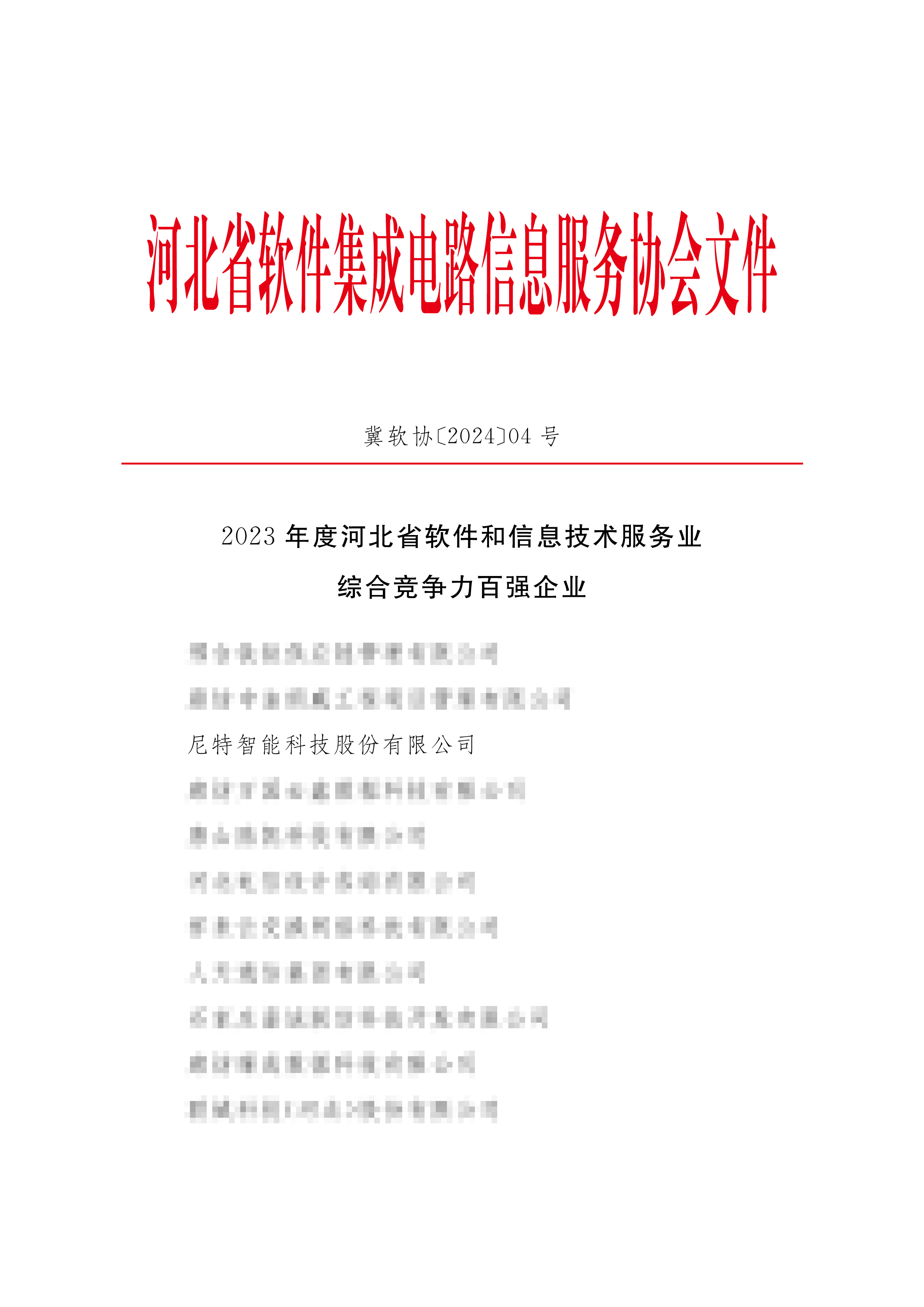 此次評(píng)選,旨在科學(xué)反映軟件和信息服務(wù)相關(guān)企業(yè)的運(yùn)行情況與競(jìng)爭(zhēng)力水平,推動(dòng)軟件和信息技術(shù)服務(wù)業(yè)高質(zhì)量發(fā)展。獲評(píng)“河北省軟件和信息技術(shù)服務(wù)業(yè)綜合競(jìng)爭(zhēng)力百?gòu)?qiáng)企業(yè)”,是行業(yè)對(duì)尼特智能軟件研發(fā)實(shí)力、科技創(chuàng)新能力、信息技術(shù)服務(wù)水平的充分肯定。