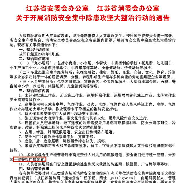 某“園中園”項(xiàng)目積極響應(yīng)政策號(hào)召,在園區(qū)樓道、門衛(wèi)室等場(chǎng)景安裝了尼特智能一鍵式聲光報(bào)警器,通過4G通信接收聯(lián)動(dòng)報(bào)警指令,發(fā)出高分貝警報(bào)鳴笛及閃燈警示,同時(shí)尼特云智慧消防管理平臺(tái)將報(bào)警信息以微信、短信、電話等形式推送到管理員的手機(jī)上,確保火情信息的及時(shí)傳達(dá),彌補(bǔ)了園區(qū)內(nèi)未安裝聲光警報(bào)設(shè)備的不足,改善了園區(qū)疏散預(yù)警能力薄弱現(xiàn)狀,進(jìn)一步保障人民群眾生命及財(cái)產(chǎn)安全。