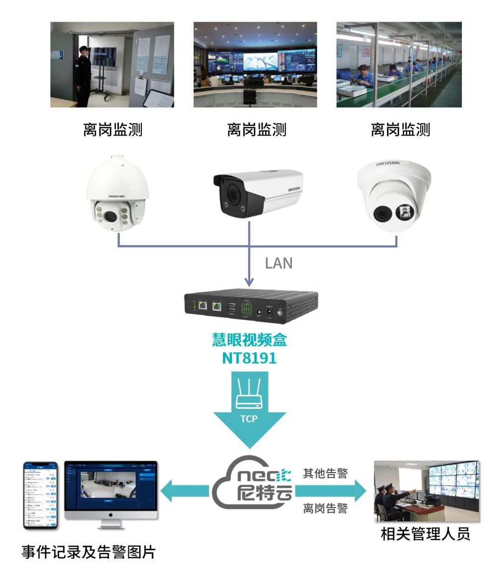 不僅是在消控室,在工廠、工地、電力、監(jiān)控室等工作環(huán)境中,員工的離崗行為也會(huì)帶來一定的安全隱患,降低工作能效。為及時(shí)發(fā)現(xiàn)并預(yù)警離崗情況,提升管理效能,尼特智能基于AI智能識(shí)別技術(shù),根據(jù)不同場(chǎng)景需要,推出了兩套離崗識(shí)別解決方案,實(shí)時(shí)監(jiān)測(cè)離崗行為,及時(shí)發(fā)現(xiàn)并進(jìn)行預(yù)警,為各行業(yè)提供更為安全可靠的工作環(huán)境。