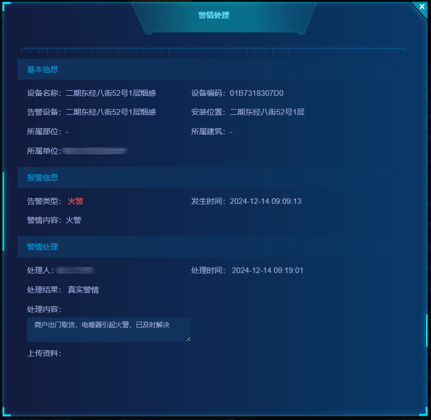 經(jīng)核查,起火原因均為用電取暖引起火警。能夠在火情發(fā)生的早期階段進(jìn)行快速、高效處理,要?dú)w功于本市場(chǎng)為實(shí)現(xiàn)消防安全管理的“早預(yù)警、早發(fā)現(xiàn)、早處置”,全面推動(dòng)了智慧消防建設(shè)工作,于6500余家商戶內(nèi)安裝了尼特智能“獨(dú)立式智能火災(zāi)探測(cè)報(bào)警器”,并在值守中心搭建了尼特云智慧消防管理平臺(tái)。發(fā)生火情時(shí),線上人員及時(shí)通知線下核警人員核實(shí)現(xiàn)場(chǎng)情況,線下核警人員及時(shí)撥打消防救援電話,消防隊(duì)及時(shí)到達(dá)處理,才將火情扼殺在“搖籃”之中!