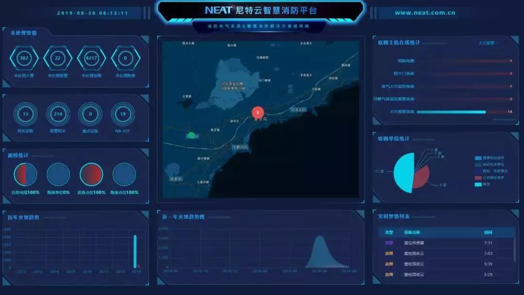 疫情期間,物業(yè)、社區(qū)智能化監(jiān)管手段發(fā)揮著重要的作用,尼特云智慧消防平臺(tái)能夠助力消防監(jiān)管部門(mén)、企事業(yè)單位、醫(yī)療衛(wèi)生單位實(shí)時(shí)在線掌控本單位消防安全。24小時(shí)不間斷監(jiān)測(cè)設(shè)備在線情況,減少值班人員人數(shù),避免人員密切接觸。平臺(tái)支持遠(yuǎn)程處理異常故障,一旦發(fā)生火災(zāi),會(huì)以電話、短信、APP等方式第一時(shí)間通知用戶,讓用戶能夠及時(shí)采取有效措施,減少人員傷害和財(cái)產(chǎn)損失。