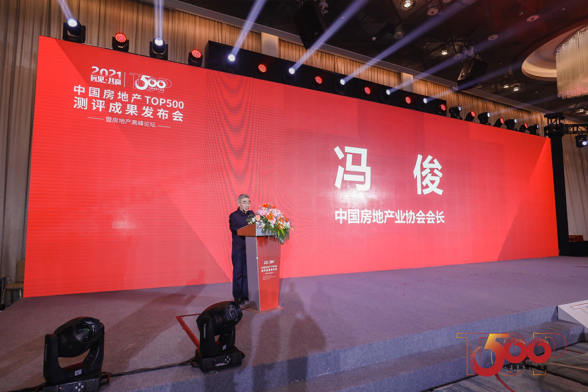 ▲中國房地產(chǎn)業(yè)協(xié)會會長馮俊發(fā)表致辭