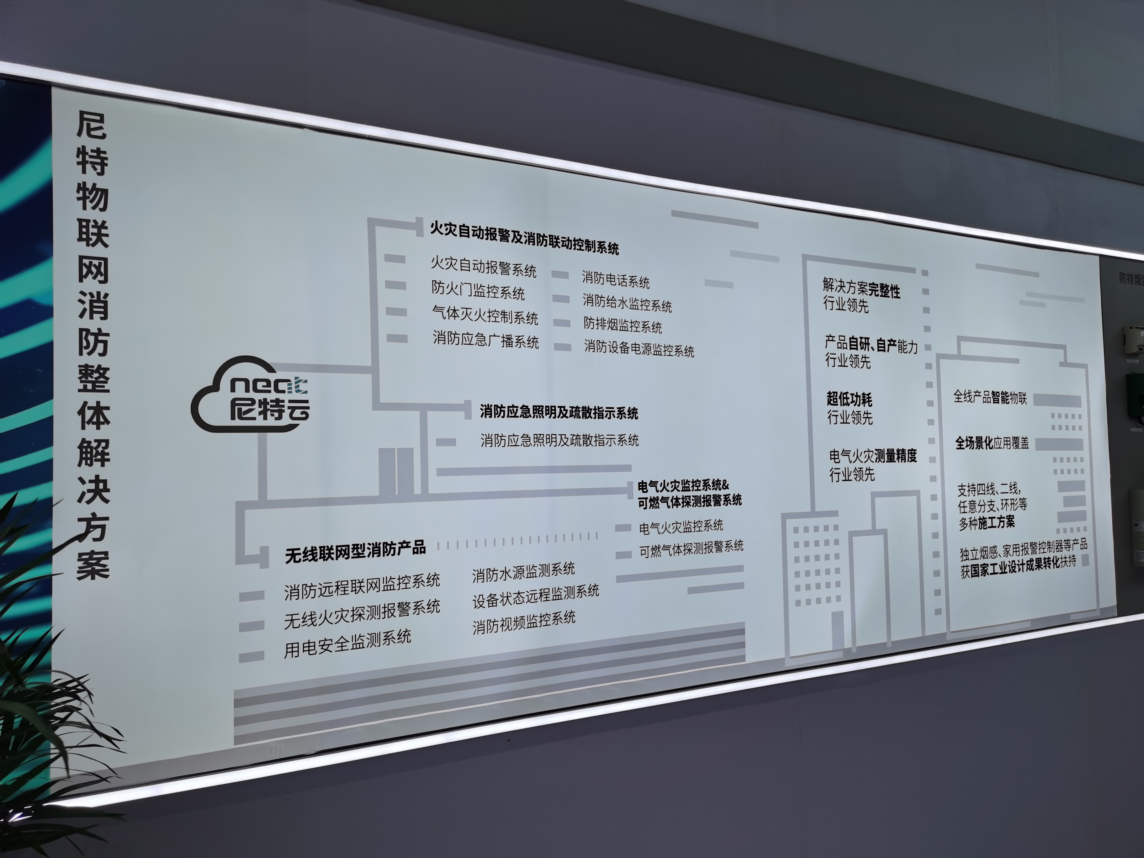 產(chǎn)品展區(qū)匯聚了尼特全新升級的1大云平臺、4大系統(tǒng)集群,共16個子系統(tǒng)。8大領(lǐng)先優(yōu)勢營造了一個專業(yè)性強、完整度高、優(yōu)勢鮮明的物聯(lián)網(wǎng)消防完整體驗空間。