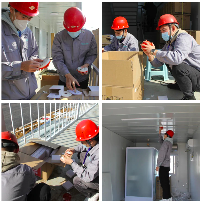 秦皇島方艙醫(yī)院總建筑面積1.7萬平方米,規(guī)劃隔離用房568間,后勤保障房14棟。為全力保障消防設備能夠快速投入使用,尼特制定了全面的人員保障計劃,明確了項目施工方案,積極馳援抗疫一線,在做好技術安裝、調試人員自身安全防控的前提下,加緊服務工期,為方艙醫(yī)院安全建設工作提供了安全的保障。