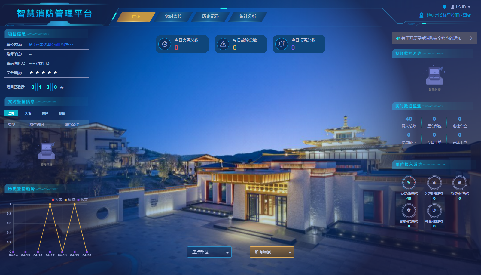 通過尼特云智慧消防管理平臺對酒店聯(lián)網(wǎng)區(qū)域進行7*24小時動態(tài)監(jiān)測,對火警、故障、隱患等異常情況自動上報,并通知負責人及時處理,彌補了人力巡檢的不足。